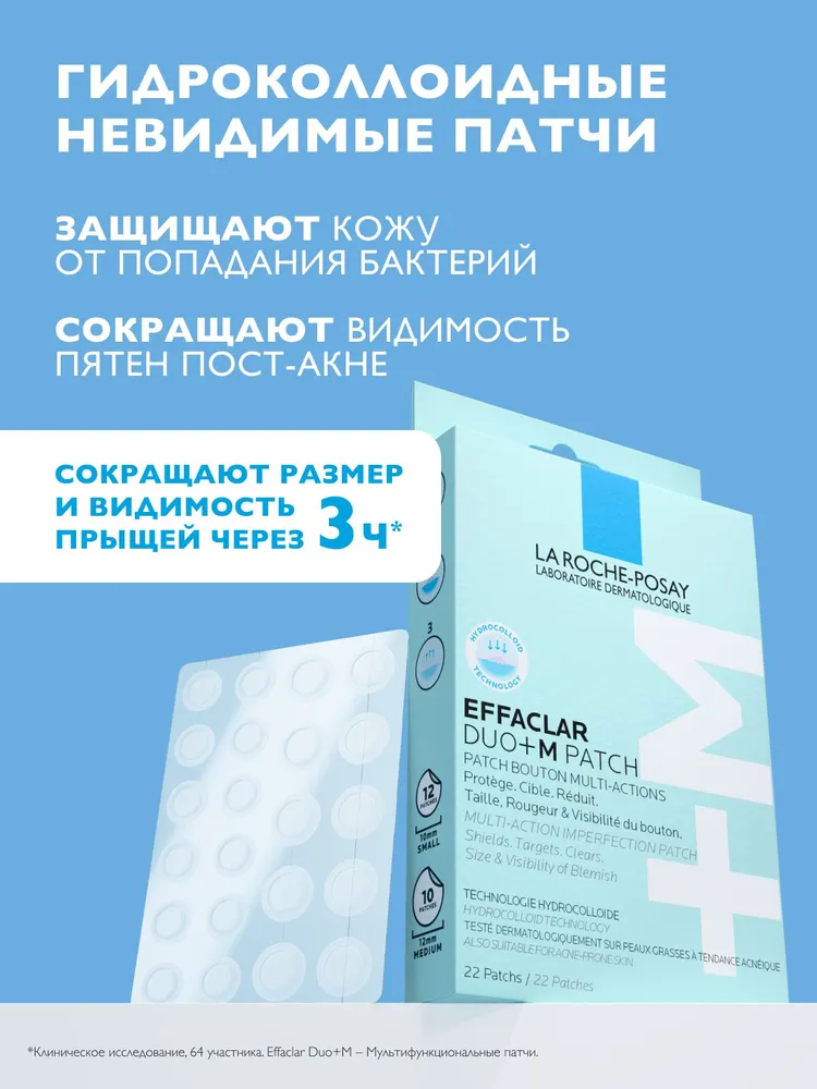 Гидроколоидные мультифункциональные патчи для защиты, точечного действия, уменьшения размеров и видимости недостатков кожи лица La Roche-Posay Effaclar Duo+ M Patch