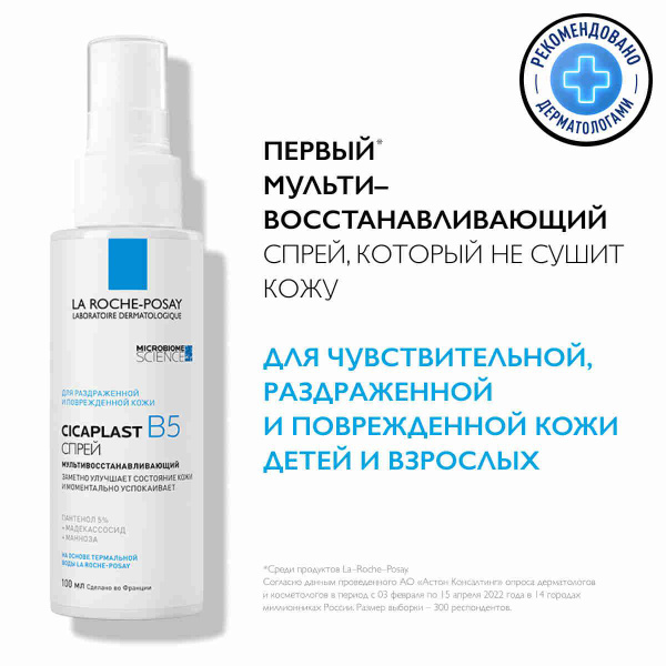 Раздражения, покраснения, ожоги, ссадины, маскне – в жизни много ситуаций, когда хочется меньше прикасаться к коже. Первый* мультивосстанавливающий спрей СICAPLAST B5 заботится о микробиоме, который является невидимым щитом нашей кожи и играет важную роль в ее восстановлении.
