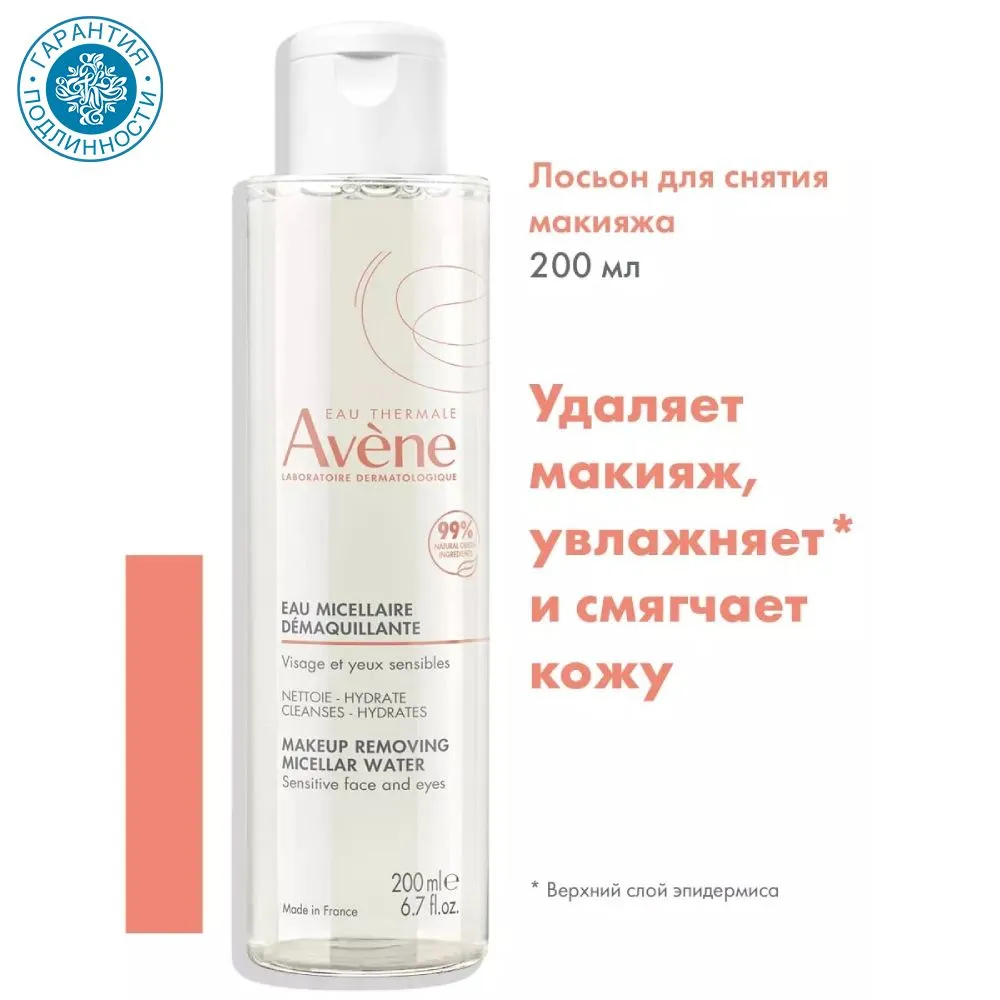 Очищающий мицеллярный лосьон мягко удаляет повседневные загрязнения и макияж с чувствительной кожи лица, контура глаз и губ. Avene Eau micellaire démaquillante нежно и эффективно очищают лицо, увлажняющие компоненты натурального происхождения обеспечивают гидратацию нежной кожи день за днем. Высокая концентрация термальной воды Avene не дает появляться покраснениям и чувству стянутости, придает коже свежесть и сияние. В результате клинических исследований с участием 30 добровольцев отмечено увеличение уровня увлажнённости до +57% через 30 минут после применения лосьона. Средство протестировано под дерматологическим контролем. 99% натуральных ингредиентов.