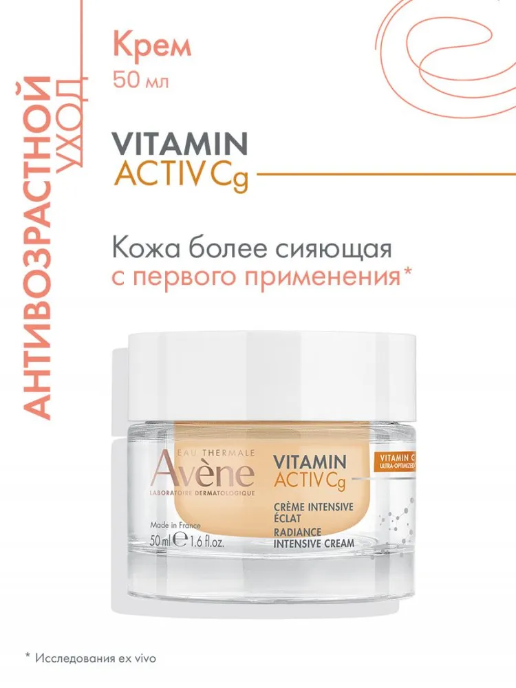 Разглаживает морщины, выравнивает тон кожи, а также придает ей интенсивное сияния благодаря сочетанию активных ингредиентов: витамин Cg*, ниацинамид и гиалуроновая кислота.