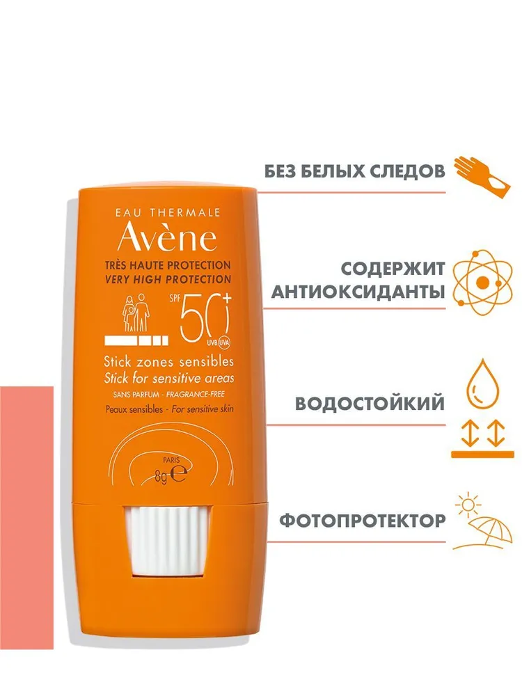 AVENE Солнцезащитный стик для чувствительных зон SPF 50+, 8 г