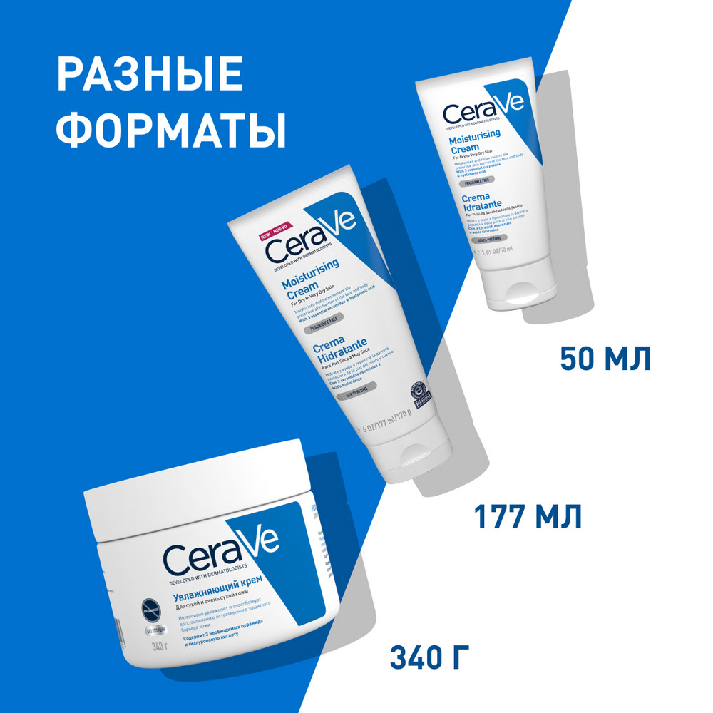 CeraVe® Увлажняющий крем – эта насыщенная, но легкая и нежирная формула, обеспечивает длительное увлажнение в течение всего дня, восстановление и укрепление защитного кожного барьера.