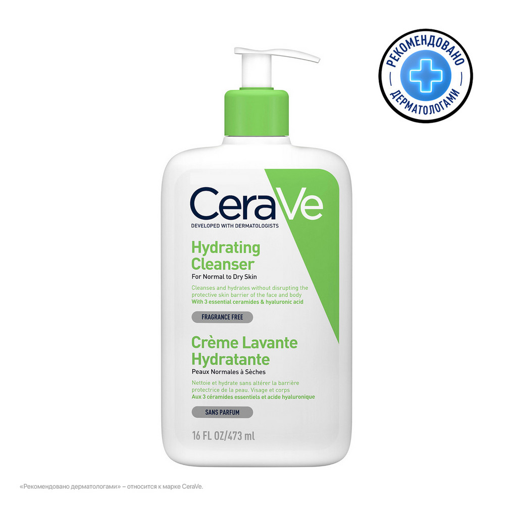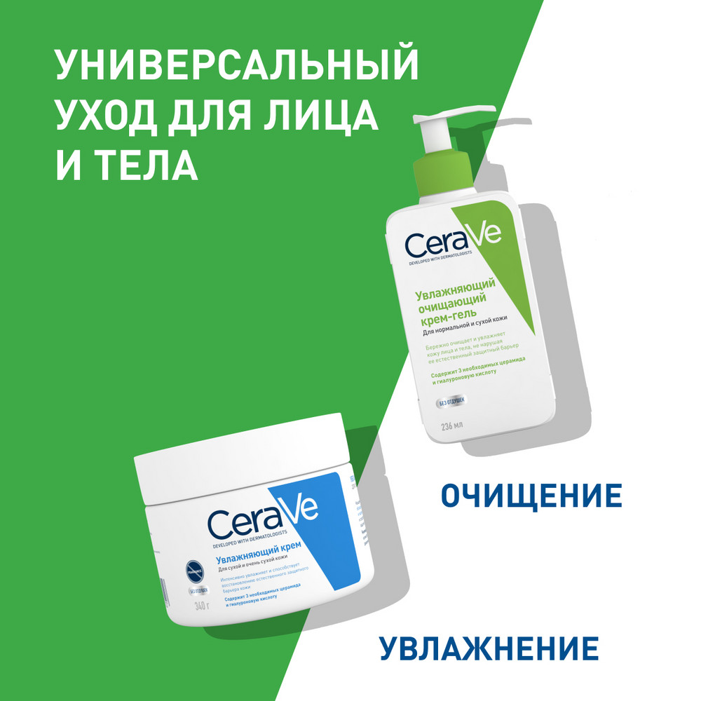 CeraVe® Увлажняющий очищающий крем-гель эффективно очищает и увлажняет кожу, способствуя восстановлению ее защитного барьера.