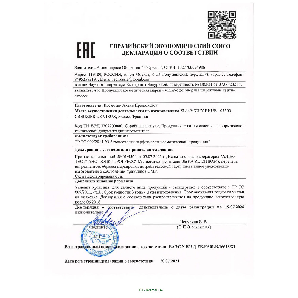 Наносите на чистую, сухую и неповрежденную кожу. Дождитесь полного высыхания до контакта с одеждой. Подходит для ежедневного применения.