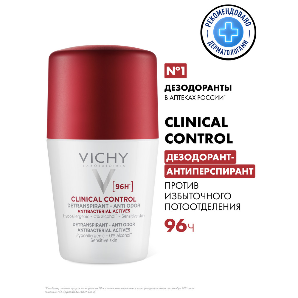 Максимальный* уровень защиты с антибактериальными компонентами. Защищает от избыточного потоотделения и сохраняет кожу сухой до 96 часов. [ЦИНК] в составе борется с бактериями, ответственными за появление неприятных запахов. Ощущение сухости до 96 часов и комфорта в течении всего дня после использования. Клинически доказано. Гипоаллергенно. Протестировано под контролем дерматологов. Подходит для ежедневного применения. Для максимального эффекта рекомендуется наносить на чистую сухую кожу и дождаться полного высыхания до контакта с одеждой. CLINICAL CONTROL — КЛИНИКАЛ КОНТРОЛ